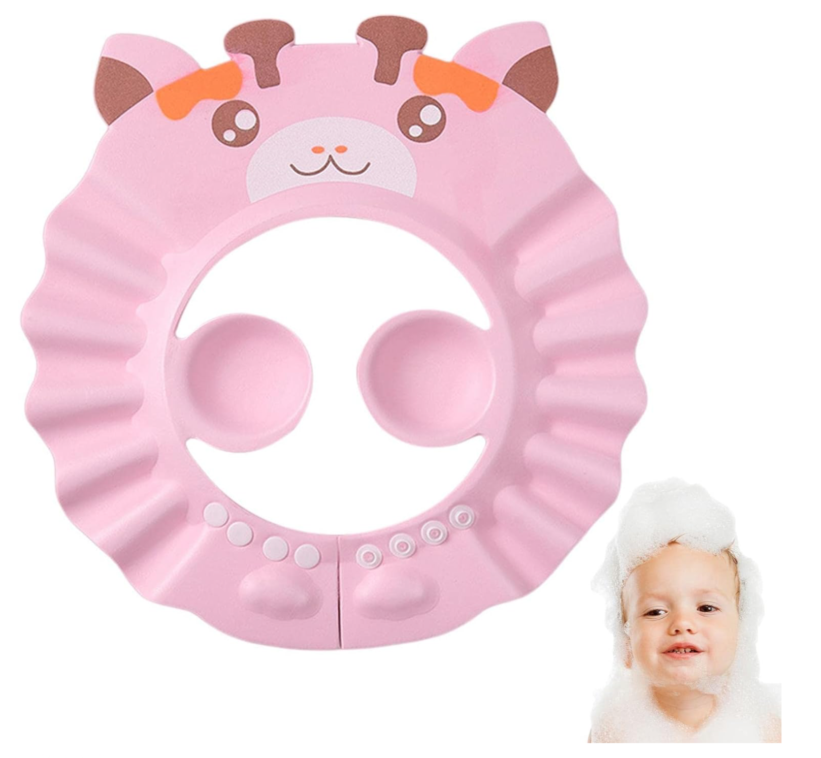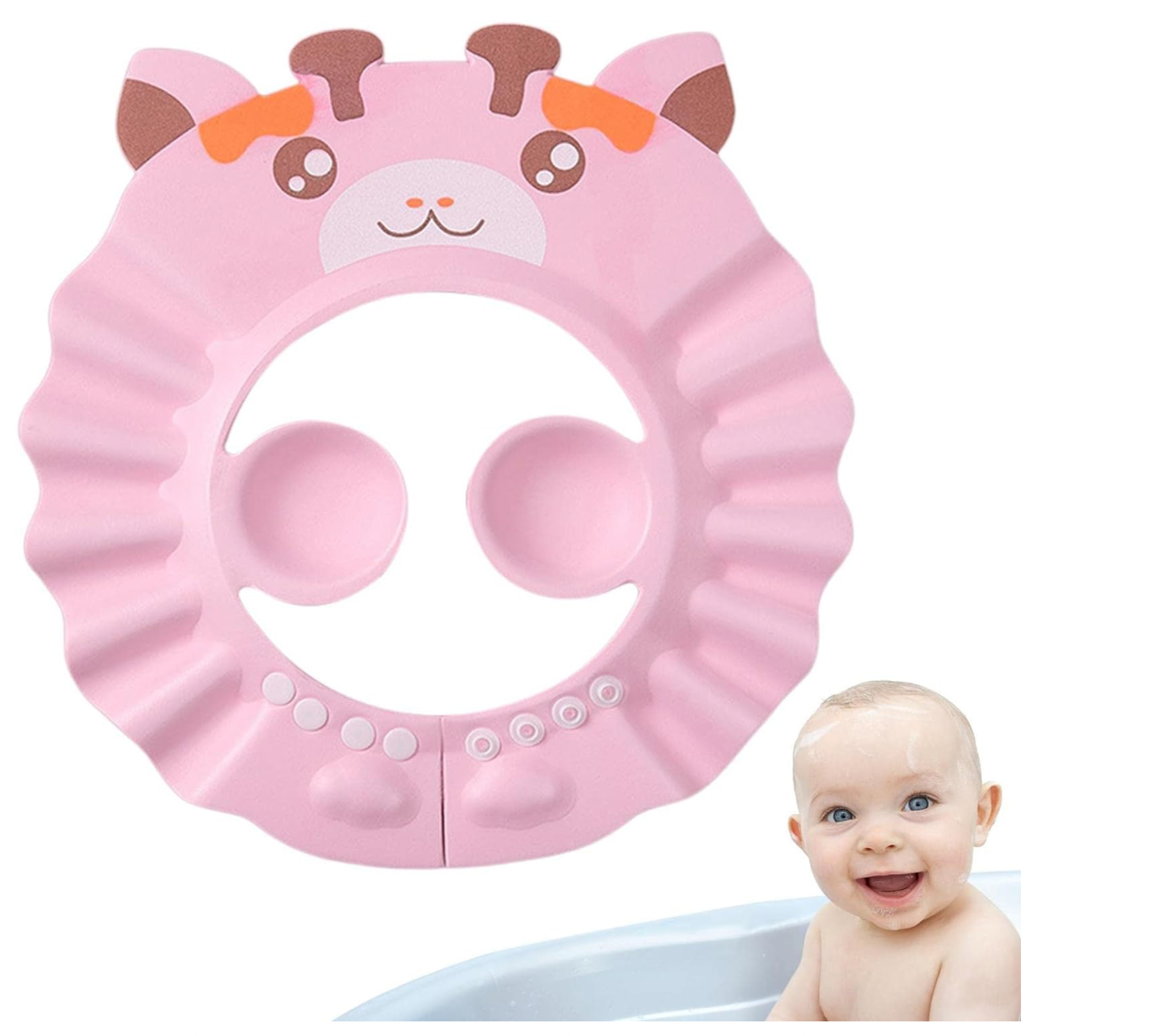 - Uroczy Design Różowej Żyrafy: Atrakcyjny wzór w żywym różowym kolorze z motywem żyrafy zachęca dziecko do noszenia daszka, wspierając pozytywne skojarzenia z kąpielą i rozwijając wyobraźnię. Twoje dziecko pokocha ten daszek kąpielowy różowa żyrafa!