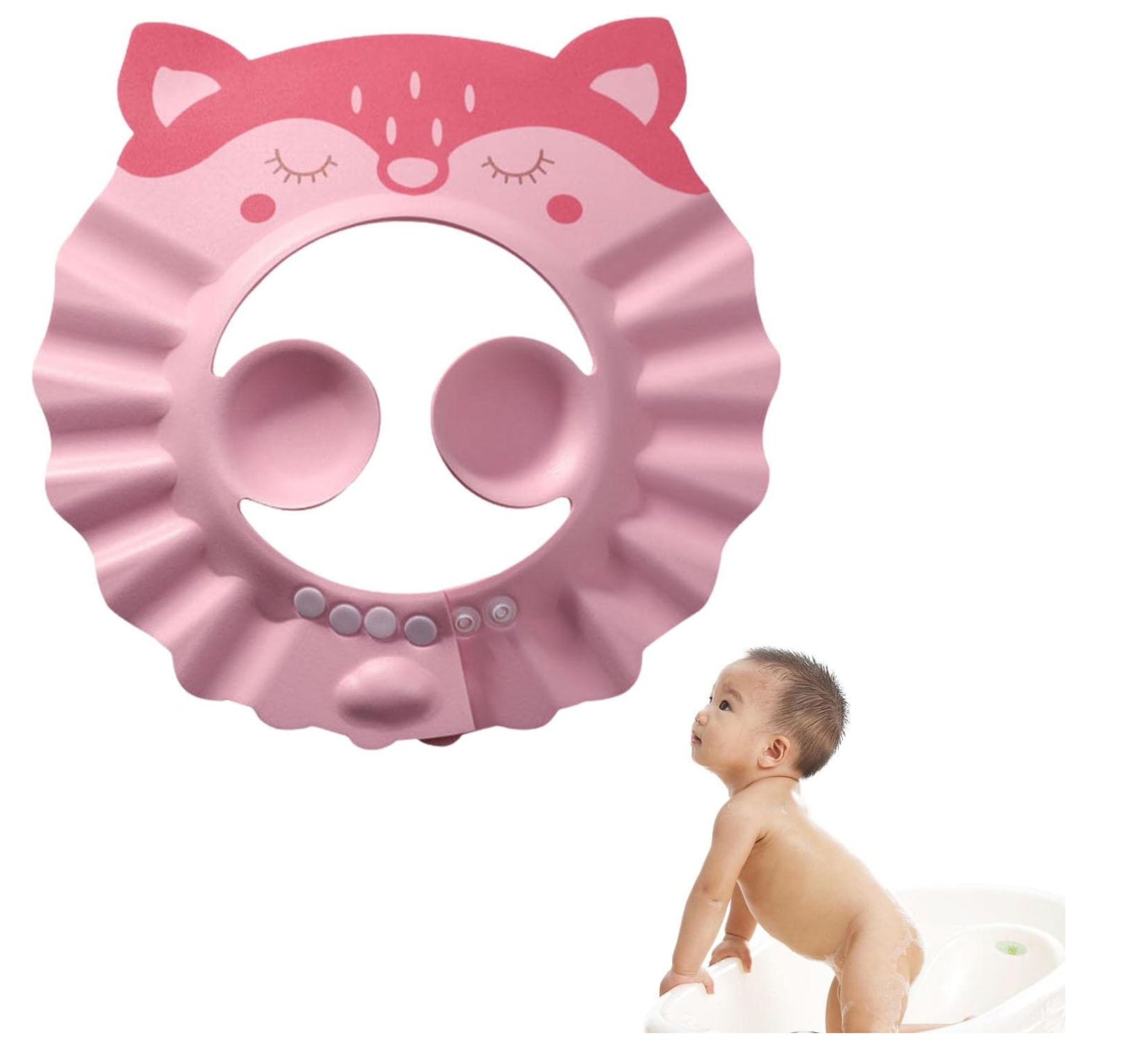- ✅ Wielofunkcyjność Poza Kąpielą: Poza wanną, ten daszek kąpielowy różowy jelonek doskonale sprawdzi się jako osłona przeciwsłoneczna podczas spacerów czy zabaw na plaży, chroniąc delikatną skórę i oczy przed promieniami UV.