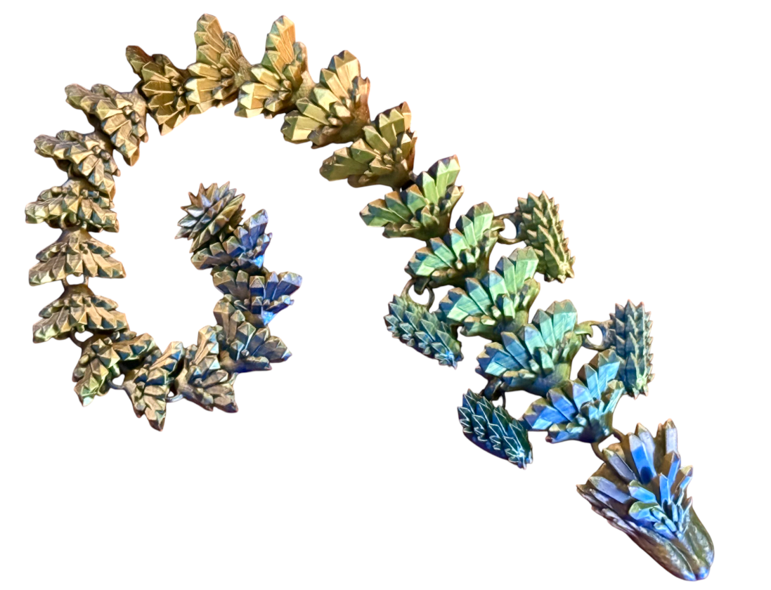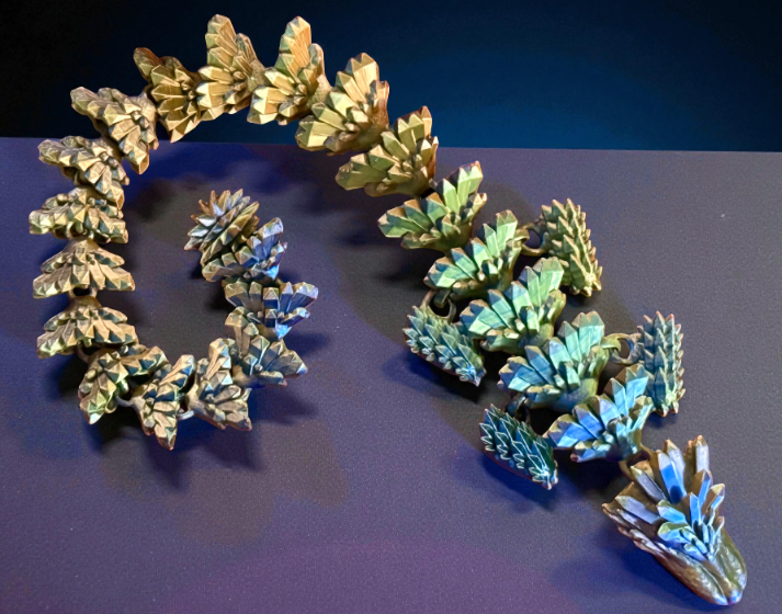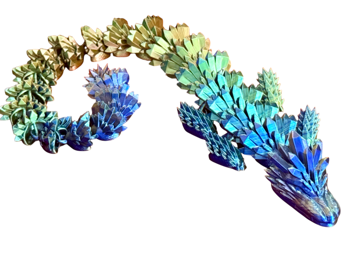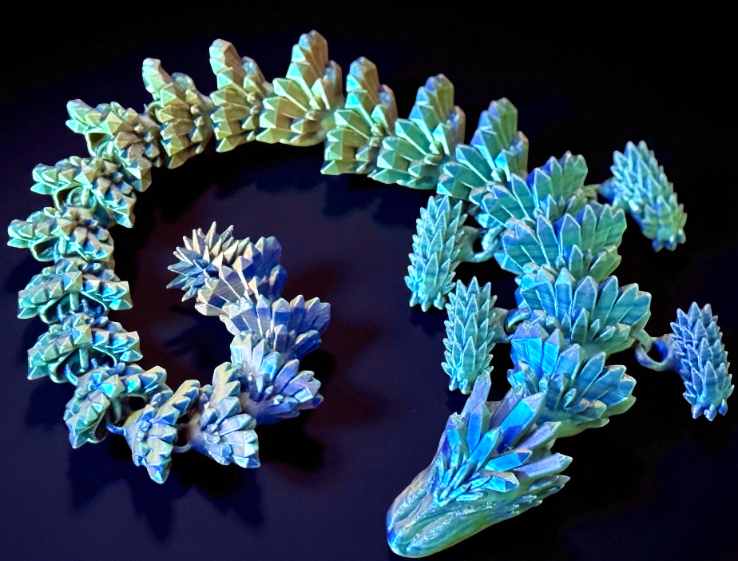 Crystal Dragon to niezwykle efektowna figurka smoka fantasy inspirowana strukturą kryształów i lodowych skał. Wykonana z dbałością o każdy detal w technologii druku 3D, zachwyca dynamiczną formą, ostrymi geometrycznymi liniami oraz nowoczesnym, magicznym wyglądem.