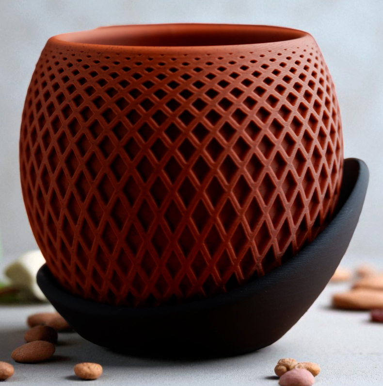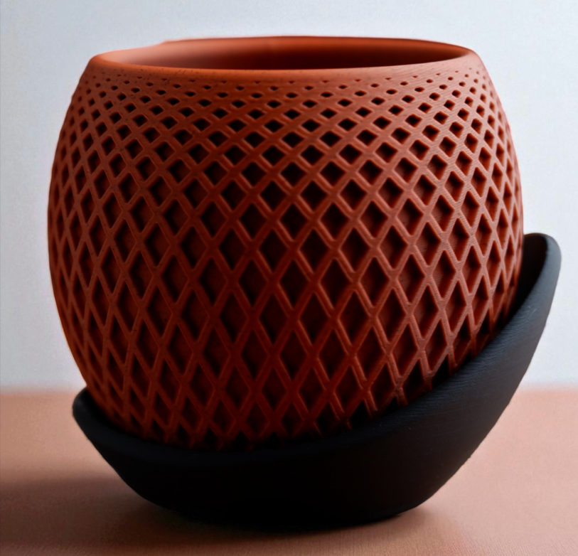 Doniczka 3D zachwyca precyzyjną geometrią i nowoczesnym wykończeniem. Dzięki technologii druku 3D możliwe jest tworzenie unikalnych form, które wyróżniają się na tle masowych produktów.