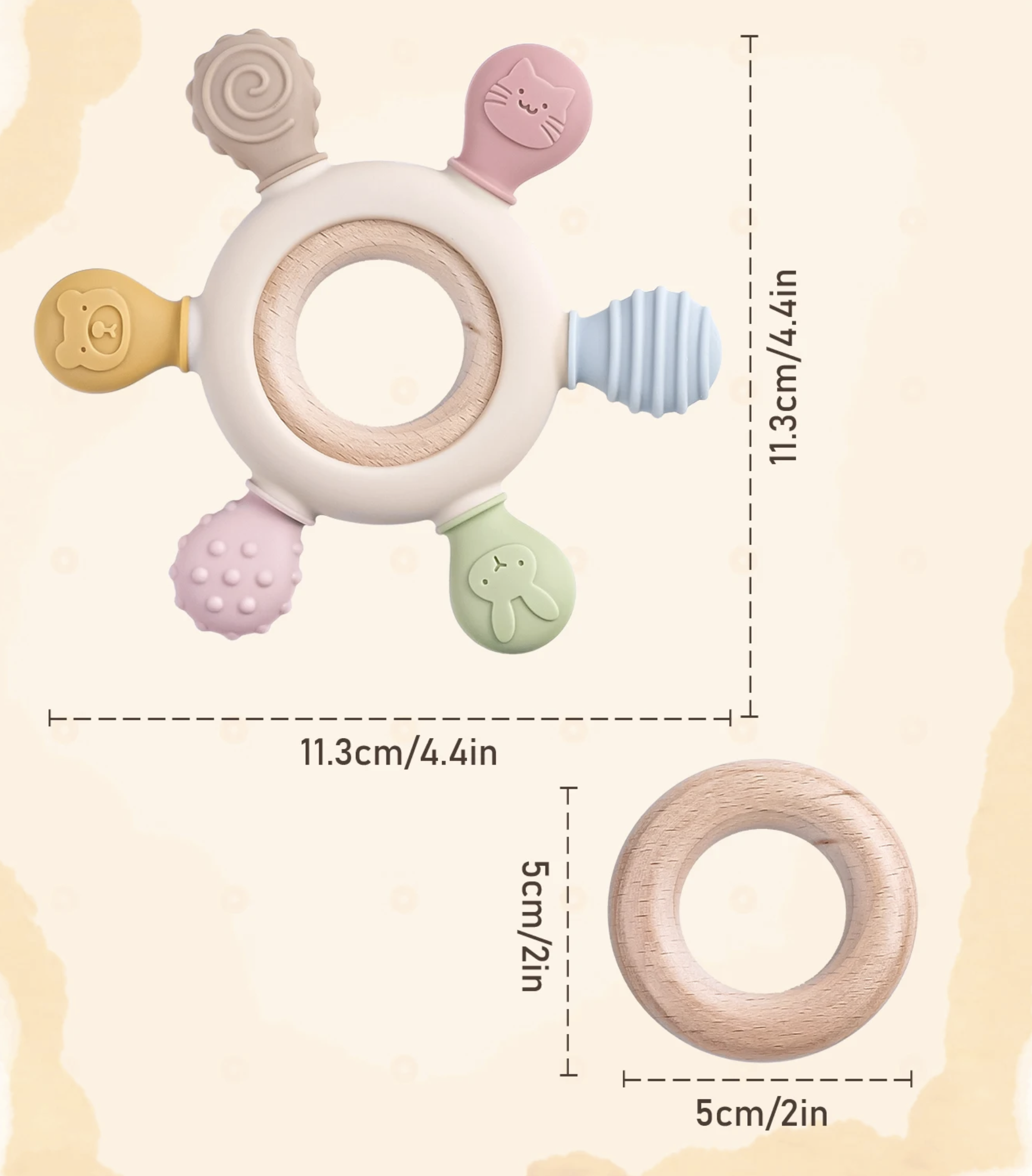 - Łatwość w Utrzymaniu Higieny: Higiena jest kluczowa dla zdrowia maluszka. Nasz **gryzak drewniany silikonowy** można łatwo czyścić łagodnym mydłem i ciepłą wodą, co jest niezbędne dla utrzymania czystości i bezpieczeństwa Twojego dziecka.