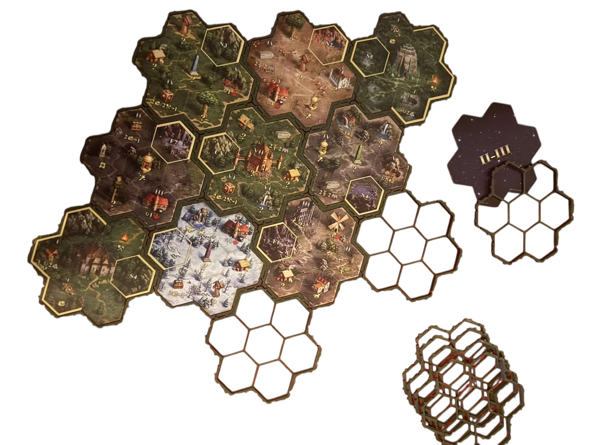 O: Nasze ramki są precyzyjnie projektowane pod standardowe wymiary kafli planszowych Heroes of Might & Magic III (ok. 90×90 mm). Zawsze zalecamy weryfikację wymiarów Twoich kafli przed zakupem, aby zapewnić idealne dopasowanie i stabilność.