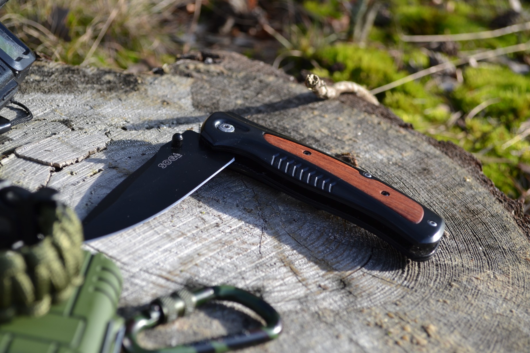 Nóż taktyczny drewniany, stalowe ostrze survival, scyzoryk