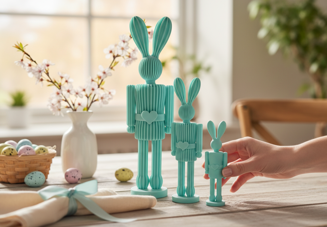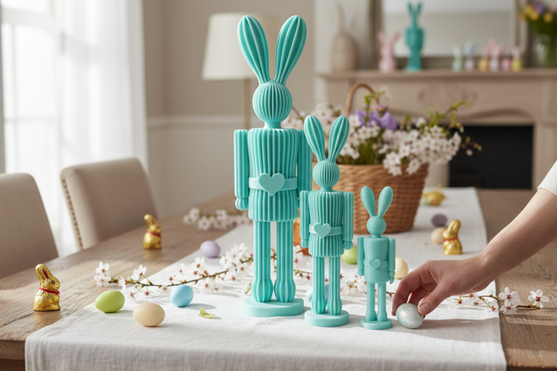 - Niezrównana Trwałość PETG – Mierzalna Przewaga: Nasze figurki wykonane są z wysokiej jakości filamentu PETG, który jest **aż o 40% odporniejszy na uderzenia i odkształcenia** niż standardowe elementy plastikowe produkowane metodą wtryskową. Ciesz się pięknem Twojego **Zestawu 3 Zajączków Dziadków do Orzechów 3D** przez wiele Wielkanocy, bez obawy o uszkodzenia. To inwestycja w długowieczne piękno i spokój ducha.